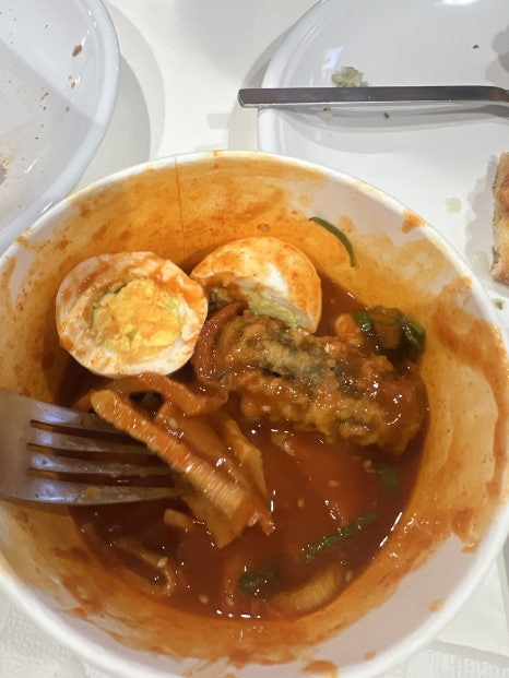 삶은 계란과 김말이까지