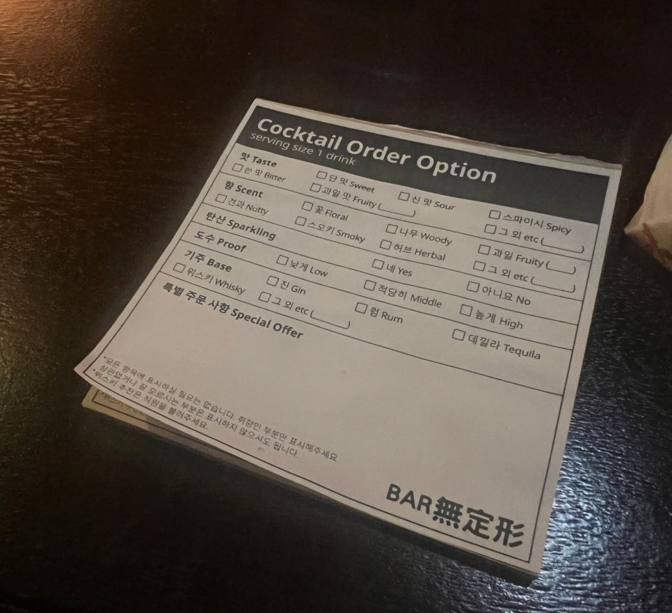 메뉴판을 열어 강렬한 물 타지 않은